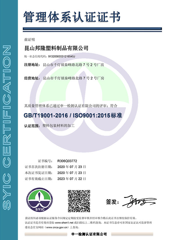 管理體系認證證書中文